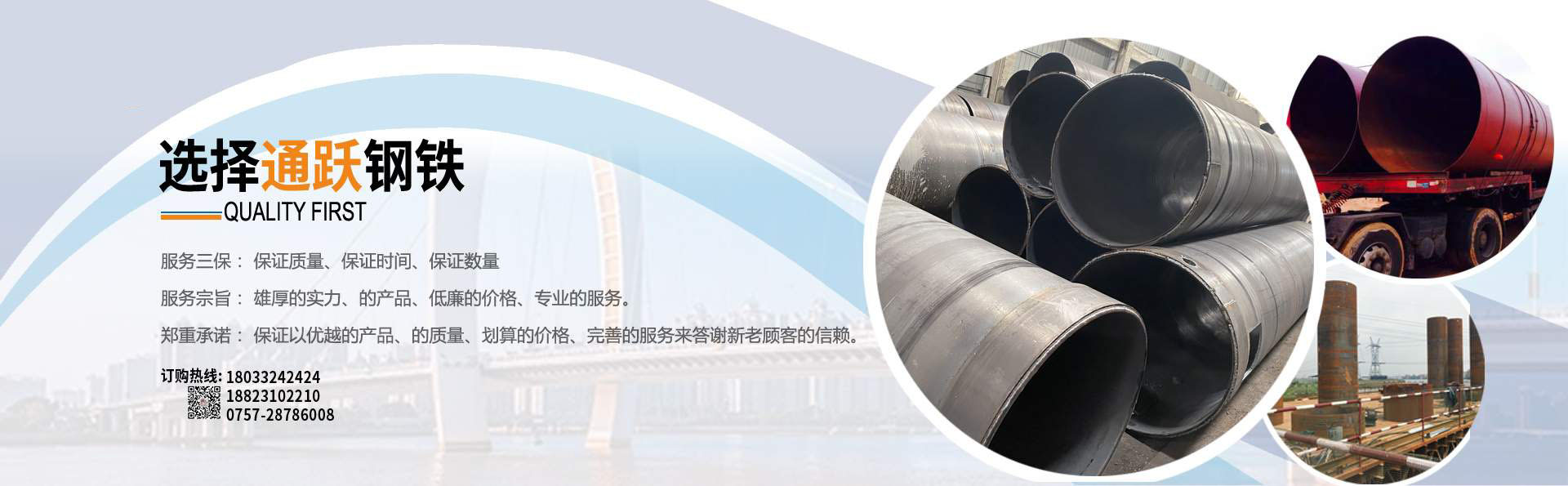 佛山市通躍鋼鐵有限公司 電話188-2310-2210 0757-28786008 擁有多條美國(guó)先進(jìn)的螺旋鋼管生產(chǎn)線,生產(chǎn)直徑φ159-φ3620mm(壁厚6mm-20mm)的雙面埋弧螺旋焊鋼管,年生產(chǎn)能力15萬(wàn)噸。 生產(chǎn)螺旋管 螺旋鋼管 螺旋焊管 規(guī)格厚度6mm-20mm 直徑159mm-3620mm 有多條鋼板卷管機(jī)生產(chǎn)規(guī)格厚度6mm-70mm 直徑400mm-5020mm 螺旋管 螺旋鋼管 鋼護(hù)筒 焊接鋼護(hù)筒 鋼板卷管 丁字焊管 加工格構(gòu)柱 鋼管樁 材質(zhì)Q235B Q345B Q235A 45# 20# Q420D Q390D 錳板 歡迎來(lái)電報(bào)價(jià),公司配有大型型材 鋼板倉(cāng)庫(kù),大量各種規(guī)格現(xiàn)貨H型鋼 槽鋼 角鋼 工字鋼 鋼板,鍍鋅方管 鍍鋅產(chǎn)品 產(chǎn)品可以定尺定長(zhǎng),提供打砂,除銹,上油漆,公司配有防腐加工廠,專業(yè)對(duì)鋼管進(jìn)行內(nèi)外壁防腐加工,鋼管外壁主要有三油兩布,五油三布,環(huán)氧煤瀝青及環(huán)氧樹(shù)脂漆,各種高分子涂料。 ......